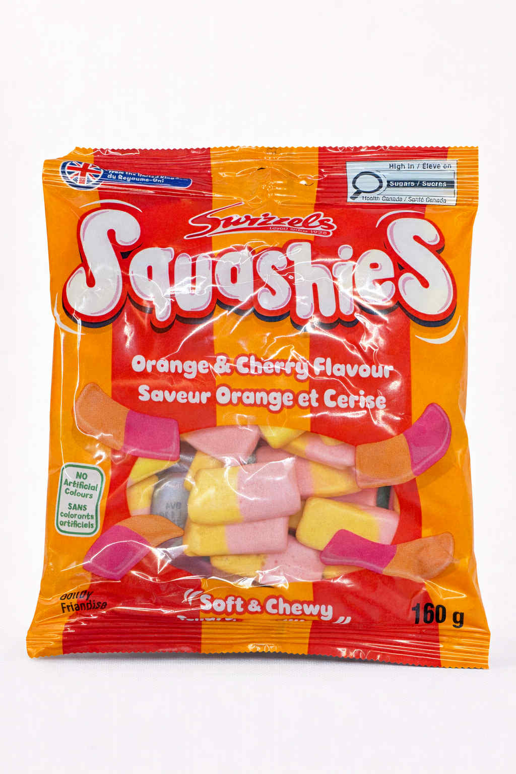 Les bonbons Squashies orange et cerise offrent un mélange irrésistible de saveurs fruitées avec une texture tendre et moelleuse qui fond en bouche. Le goût d’orange apporte une touche fraîche et légèrement acidulée, parfaitement équilibrée par la douceur sucrée de la cerise. Pas trop collants, pas trop durs, ils sont faciles à aimer et difficiles à lâcher. 160g