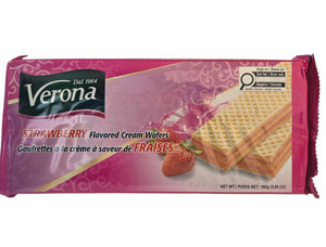 Gaufrettes Verona Strawberry Cream Wafers 160 g – Délicieuses gaufrettes croustillantes garnies d’une crème onctueuse à la fraise. Chaque bouchée offre un parfait équilibre entre texture légère et saveur sucrée de fraises. Idéales pour la collation, le dessert ou accompagner un café. Format pratique 160 g, parfait pour partager en famille ou pour les lunchs. Biscuits gaufrettes à la fraise, crème saveur fraise, collation sucrée Verona à prix liquidation.